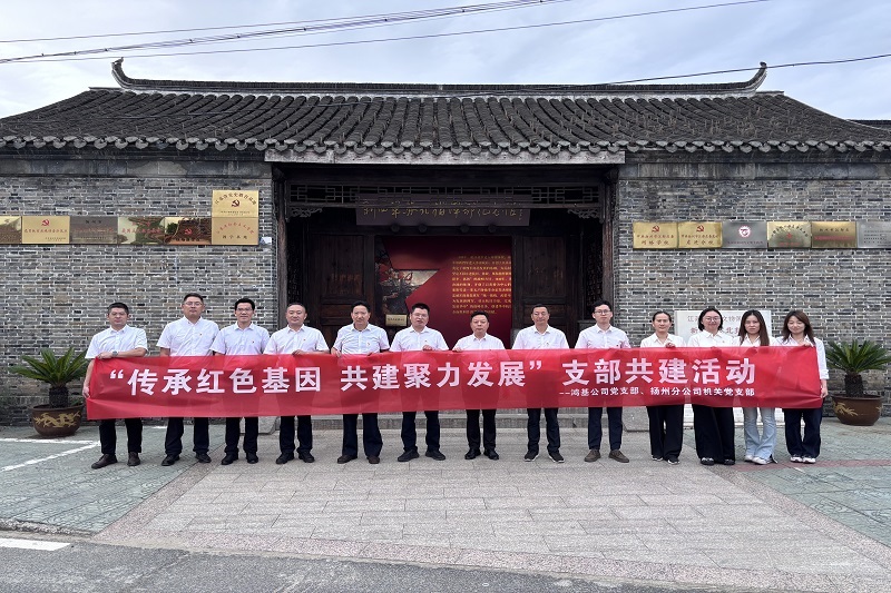 为深化基层党组织建设,凝聚党建合力,近期,鸿基公司党支部与扬州分公司机关党支部联合开展了“传承红色基因 共建聚力发展”主题党日活动。双方党员代表及业务骨干共计14人参加了此次活动。