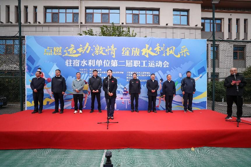 为进一步加强水利单位交流融合,丰富干部职工精神文化生活,10月19日,由江苏水源公司宿迁分公司承办的驻宿涉水单位第二届职工运动会在风景如画的骆马湖畔隆重举行。宿迁市人民政府副市长武倩出席开幕式并宣布开幕,市人民政府副秘书长钟波、水利局局长叶兴成参加开幕仪式。来自宿迁市水利局、水利部淮委沂沭泗局骆马湖管理局、江苏省骆运水利工程管理处、江苏省水文水资源勘测局宿迁分局、江苏水源公司宿迁分公司、宿豫区水利局、宿城区水利局、宿迁市水务勘测设计研究有限公司等8家水利单位近400人参加活动。