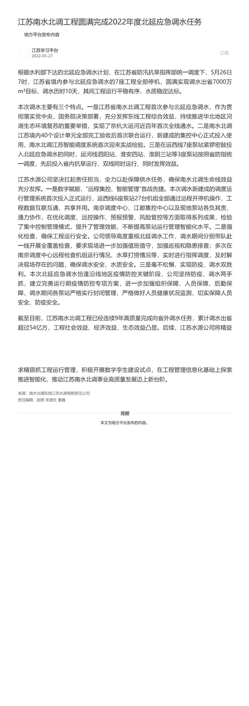 扬州分公司 淮安分公司 宿迁分公司 徐州分公司 项目分公司 江苏东源投资有限公司 南水北调江苏生态环境有限公司 南水北调(江苏)数智科技有限公司