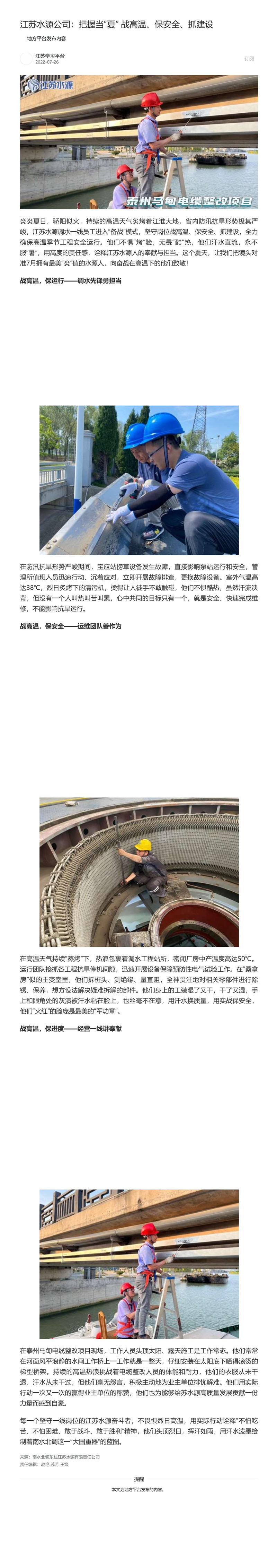 学习强国、中国江苏网、新江苏网——江苏水源公司:把握当“夏” 战高温、保安全、抓建设