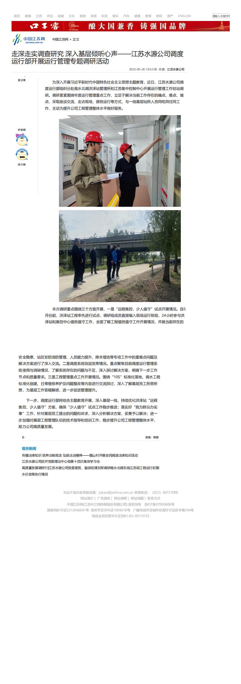 中国江苏网:走深走实调查研究 深入基层倾听心声——江苏水源公司调度运行部开展运行管理专题调研活动