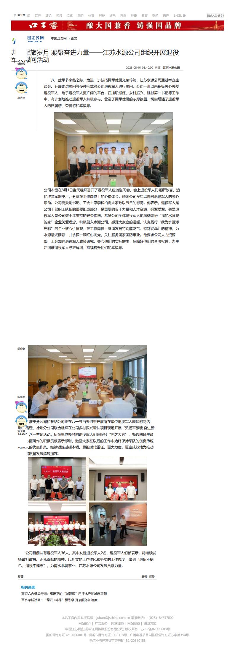 中国江苏网:共忆军旅岁月 凝聚奋进力量——江苏水源公司组织开展退役军人慰问活动