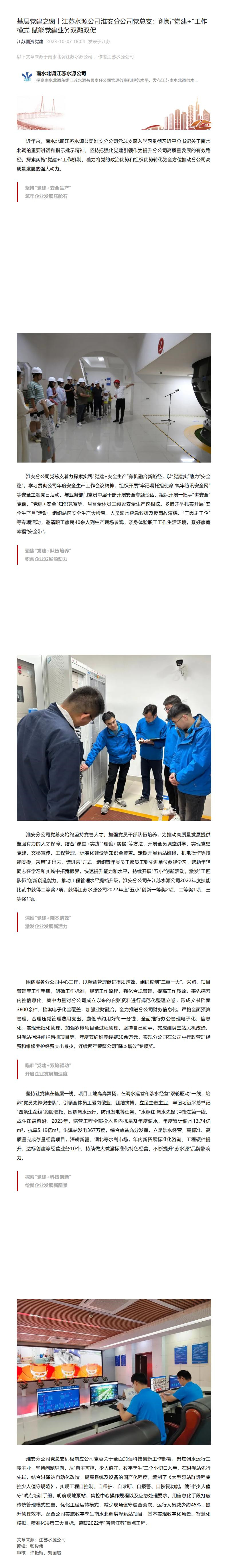 江苏国资党建——基层党建之窗丨江苏水源公司淮安分公司党总支:创新“党建+”工作模式 赋能党建业务双融双促