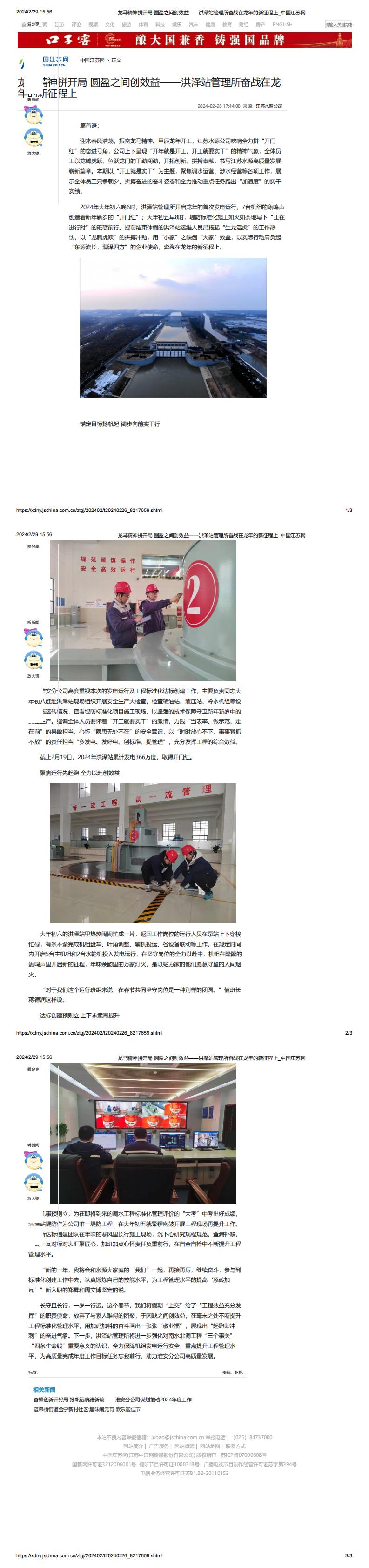 中国江苏网:龙马精神拼开局 圆盈之间创效益——洪泽站管理所奋战在龙年的新征程上