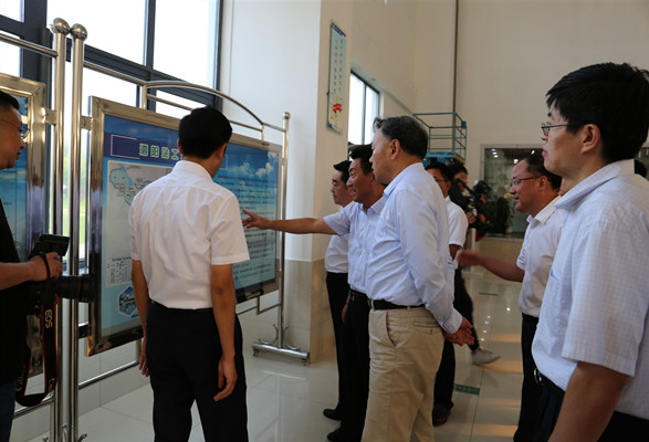 在泗阳站,陆桂华视察了泵站主副厂房、电机层及中控室等地,详细了解了工程管理、安全调水以及工程效益等方面的情况;同时就水生态文明建设、水利工程补短板、水利行业强监管等系统水利工作进行现场调研。期间,荣迎春董事长向陆副部长一行介绍了东线枢纽概况、工程调水效益和境外生态补水情况,并简要汇报了泵站人员结构、工程调水流量、自动化监控系统以及工程精细化管理等方面经验做法。