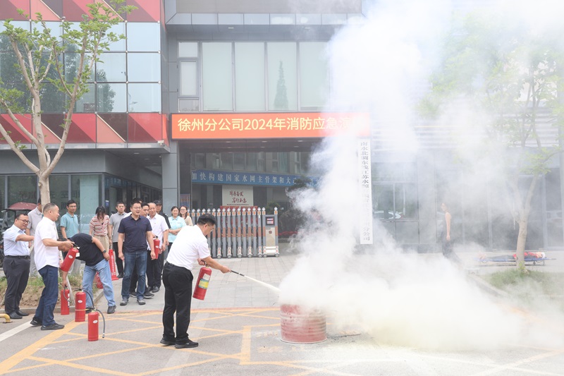 为检验员工面对突发火灾的应急能力,徐州分公司模拟管理设施楼内着火,开展了一次应急疏散消防演练,在疏散指挥组的带领下,全体员工用湿毛巾、手帕等捂住口鼻有序撤出办公楼,在现场救护组的协助下对受伤人员进行简单包扎。演练结束后,应急救火组向大家介绍了火灾的种类,重点讲解并示范了灭火器的使用方法,现场员工逐一上场进行了实操。